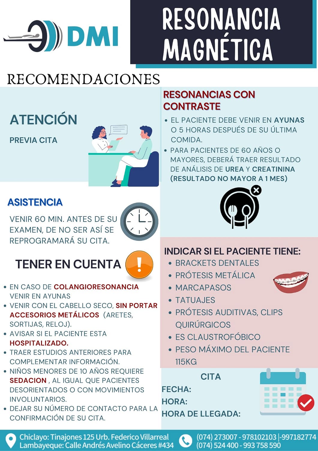 Si portas de marcapasos, implantes metálicos, piercings, brackets o clips metálicos para aneurisma cerebral, informa al personal especializado antes de sacar tu cita.